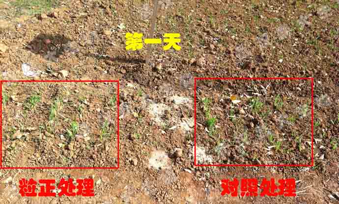 自公司研發(fā)部于11月18日,在盛大生物試驗田開展小麥(3-4葉期)施用“粒正”升級試驗,分別在第七天和第二十天后觀察使用效果(見附圖)后,第三十五天效果再現(xiàn)奇跡!
