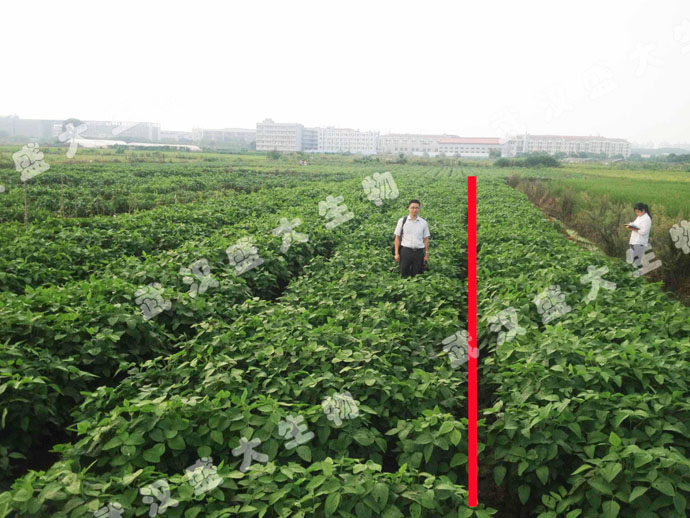 圖一、紅線左側(cè)(中間站人處)為控旺新品試驗(yàn)(明顯比兩側(cè)矮一截)、右側(cè)為對照