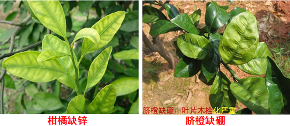 圖1、2柑橘常見的缺素問題,由于缺素導致的生長不良